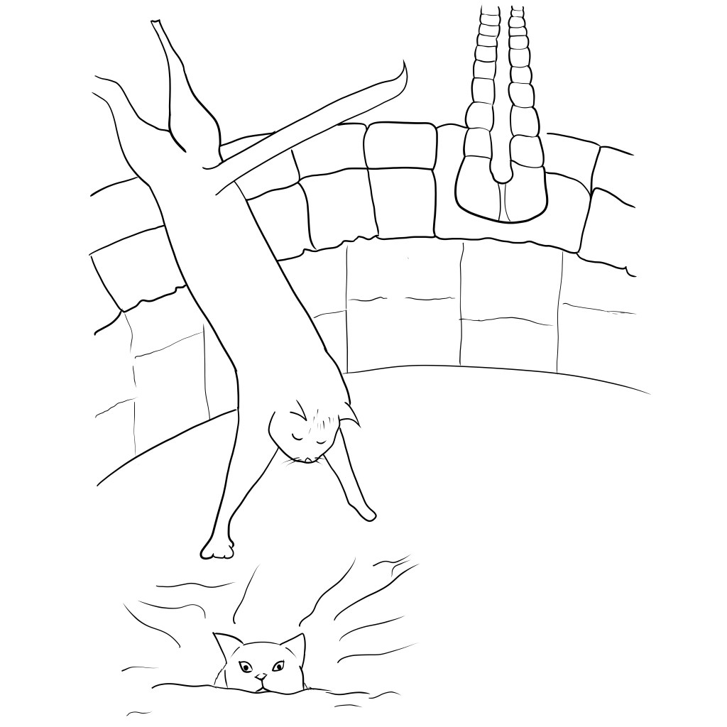 So Mr. Kitty Psychiatrist went on. He put the first finger of his right hand straight up in the air in front of him, and then so close to Stubbytail’s nose that Stubbytail went cross-eyed trying to focus on it. Then he continued: “Most kitties your size have a tail about this size.”