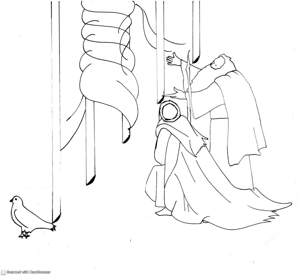 Joshua Ben Nun and Moses present themselves at the Tent of Meeting where G-d appears in a pillar of smoke.