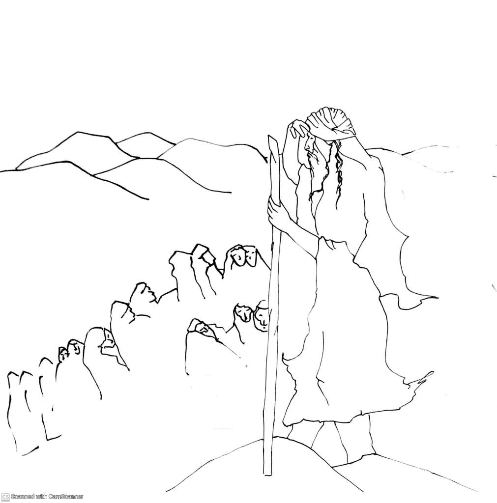 Moses appears to the Israelites for the last time on Mount Nebo.