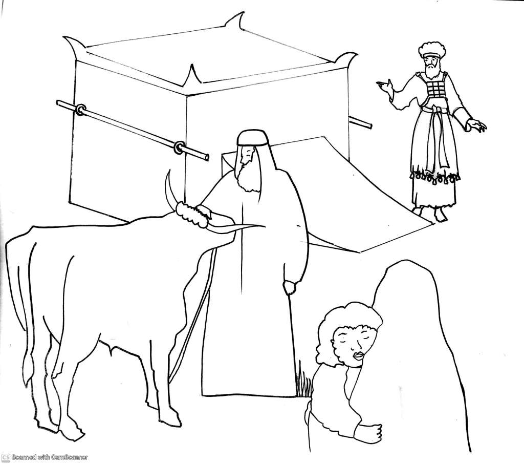 The high priest, Aaron, brings a young bull and rams to the Tabernacle. Leviticus 16:3