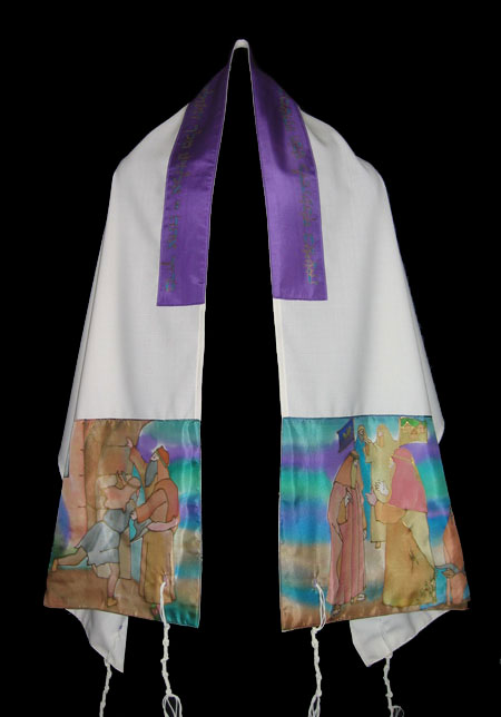 Unfortunately, as of this time, the photos of the Korah Tallit seem not to have survived. The illustrations of the Korah Tallit can be seen and downloaded in Illustrations of the Book of Numbers, Korach.